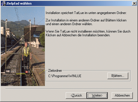 Die selbstentpackende EXE TatLueBKU.EXE ist aufzurufen und der Zielordner muß angegeben werden.
