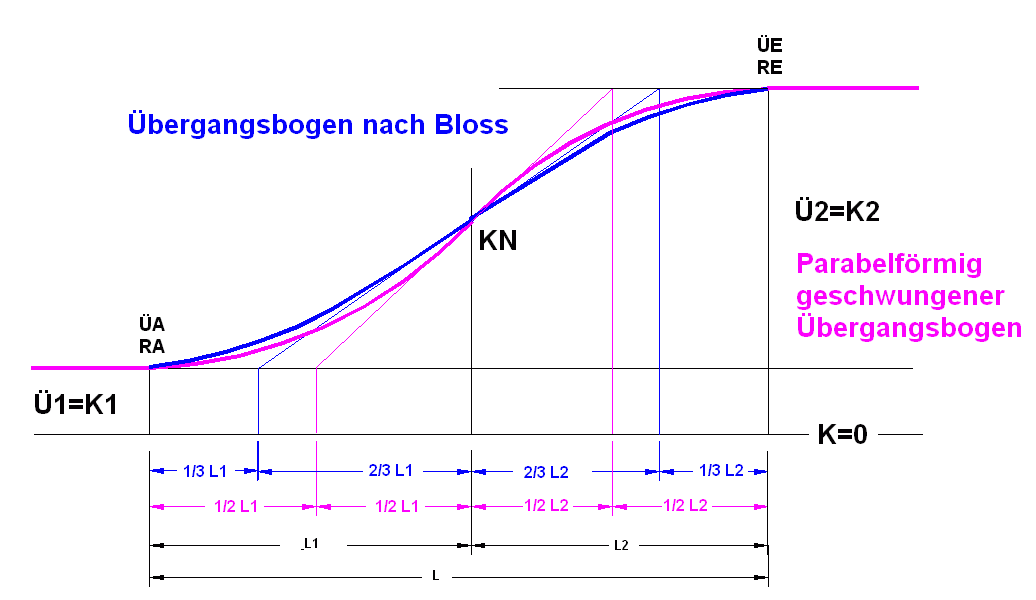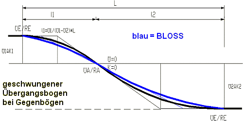 Übergangsbogen und Überhöhungsrampe nach Bloss